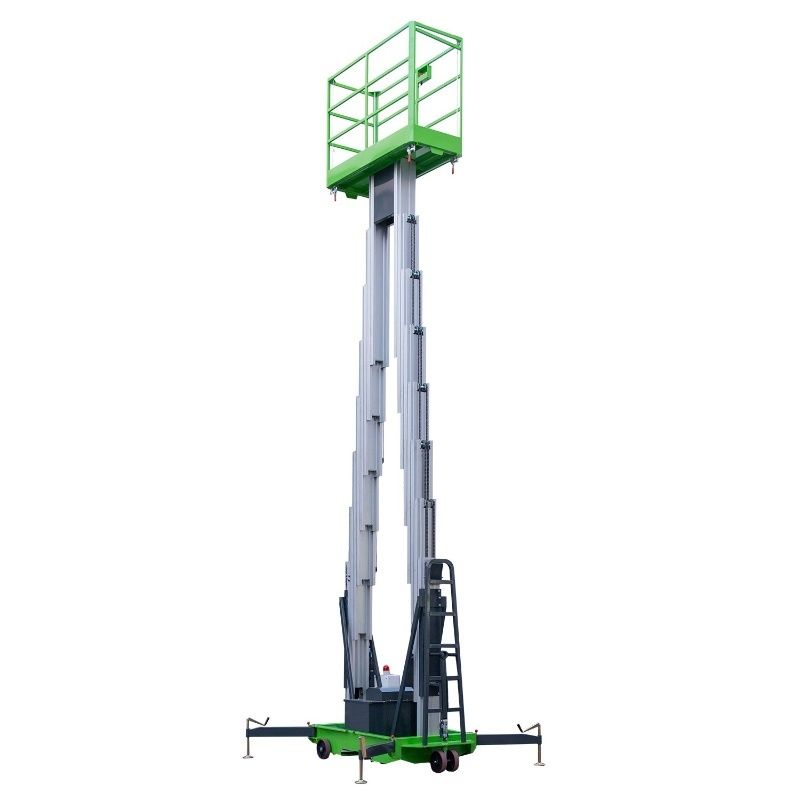The lifting height ranges from 4m to 22m for different mast Aluminum Aerial Work Platform and the loading capacity varies from 130Kg to 300Kg.