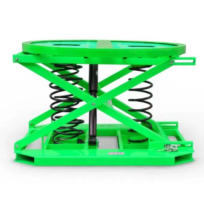 Detachable springs can be combined and used for stacking operations with different load capacities. The spring automatically moves up and down according to the weight of the cargo, and the table is rotated 360 degrees manually.
