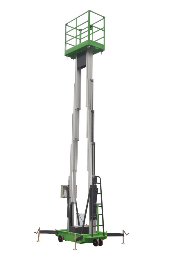 Double Mast Aluminum Aerial Work Platforms has light weight, so people can move it easily. You can not lift the machine if the machine is not in a horizonal statues and the outriggers need to be fully opened.