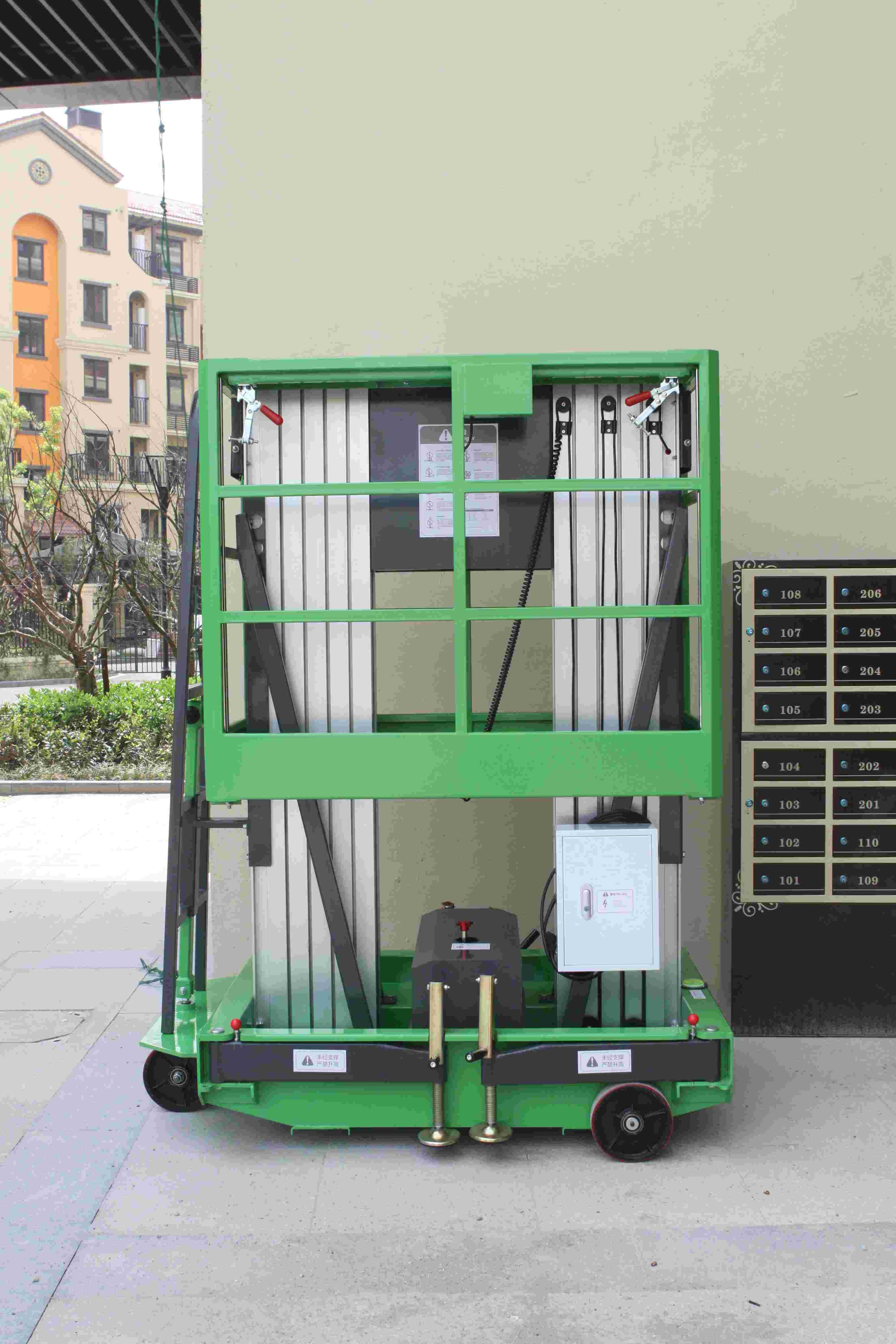 The aerial work platform is in mast structure with aluminum material