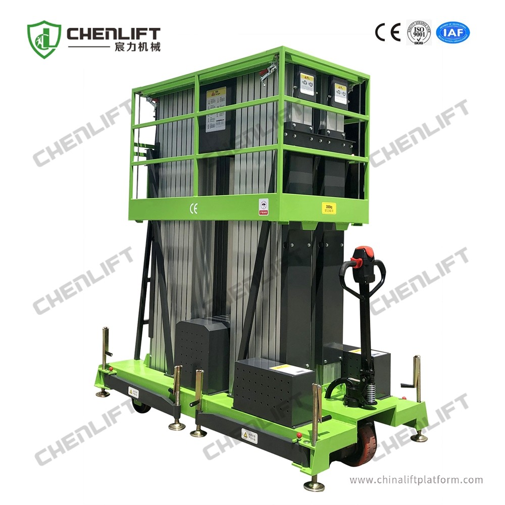 The aerial work platform is in mast structure with aluminum material