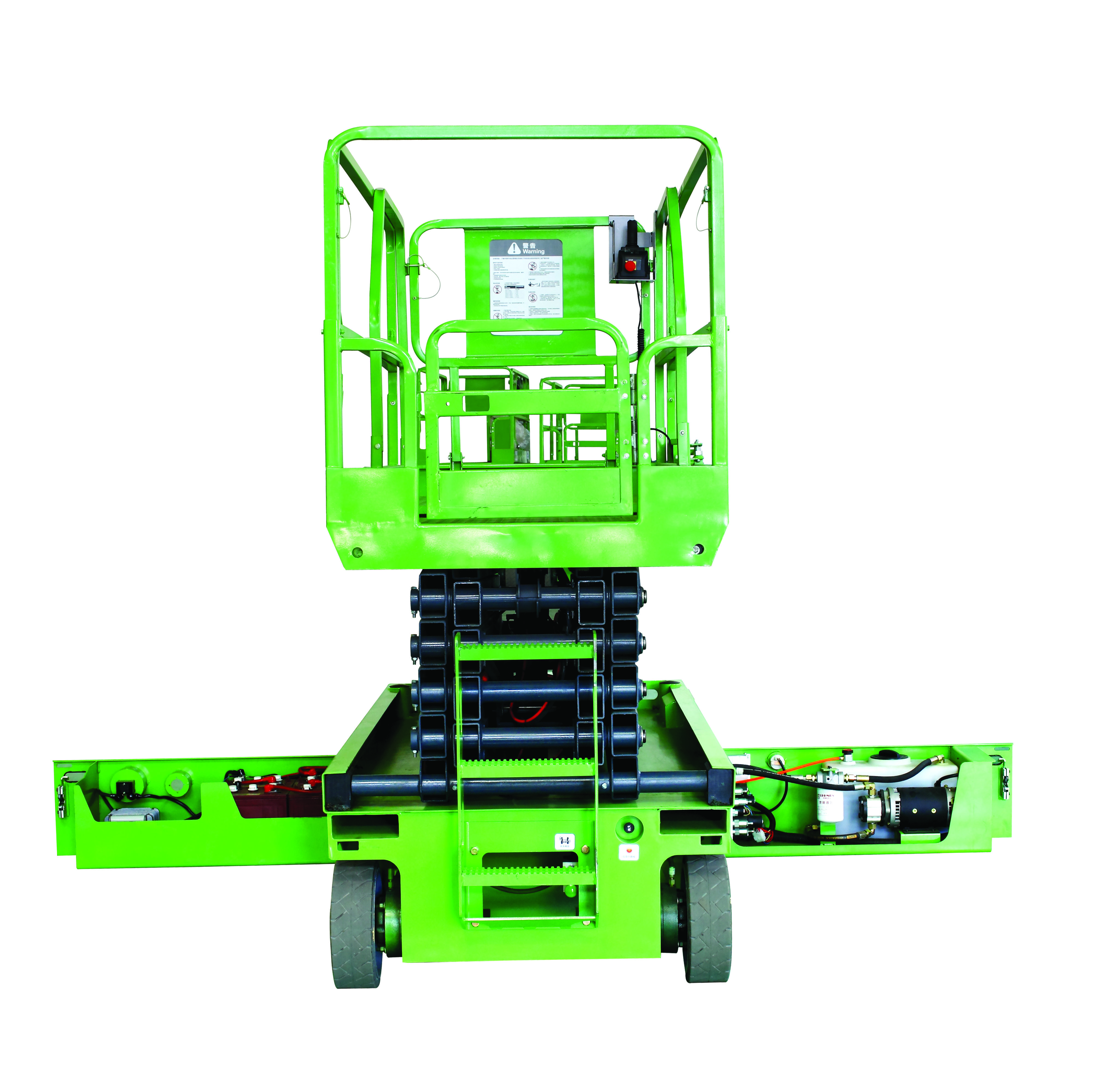 The scissor structure enables reliable stability when the lifts rising up, the broad platform and the high loading capacity get the aerial working more efficient and more safely.