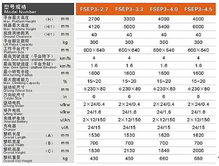 | Max .Platform Height | 2700mm/3300mm/4000mm/4500mm |